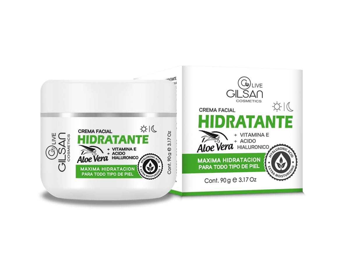 Crema hidratante con ácido hialurónico, aloe vera y vitamina E ayuda a hidratar, proteger y mejorar la apariencia de la piel.
