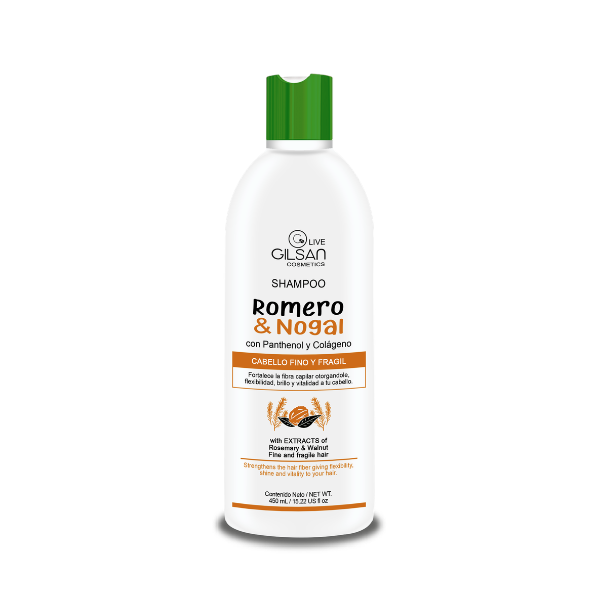 Este shampoo combina extracto de romero y nogal, ofreciendo un cuidado integral para el cabello y el cuero cabelludo.